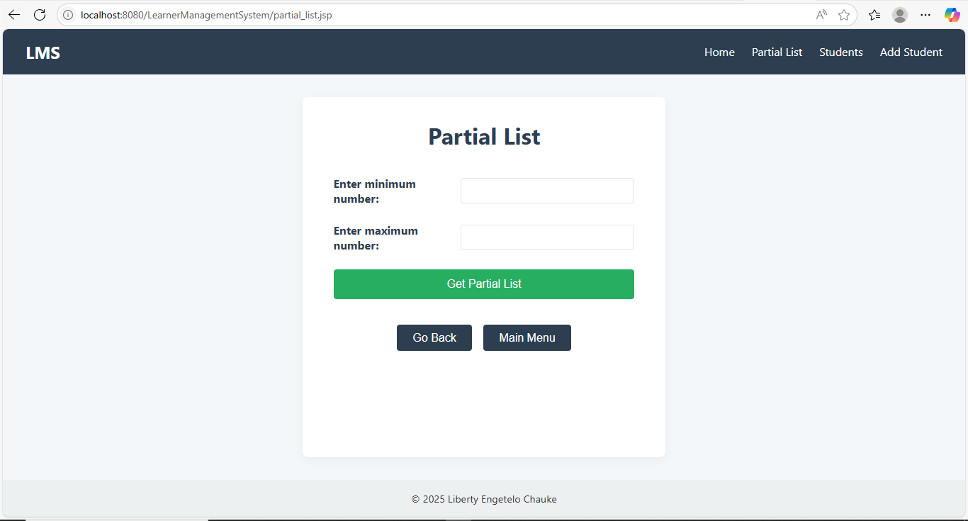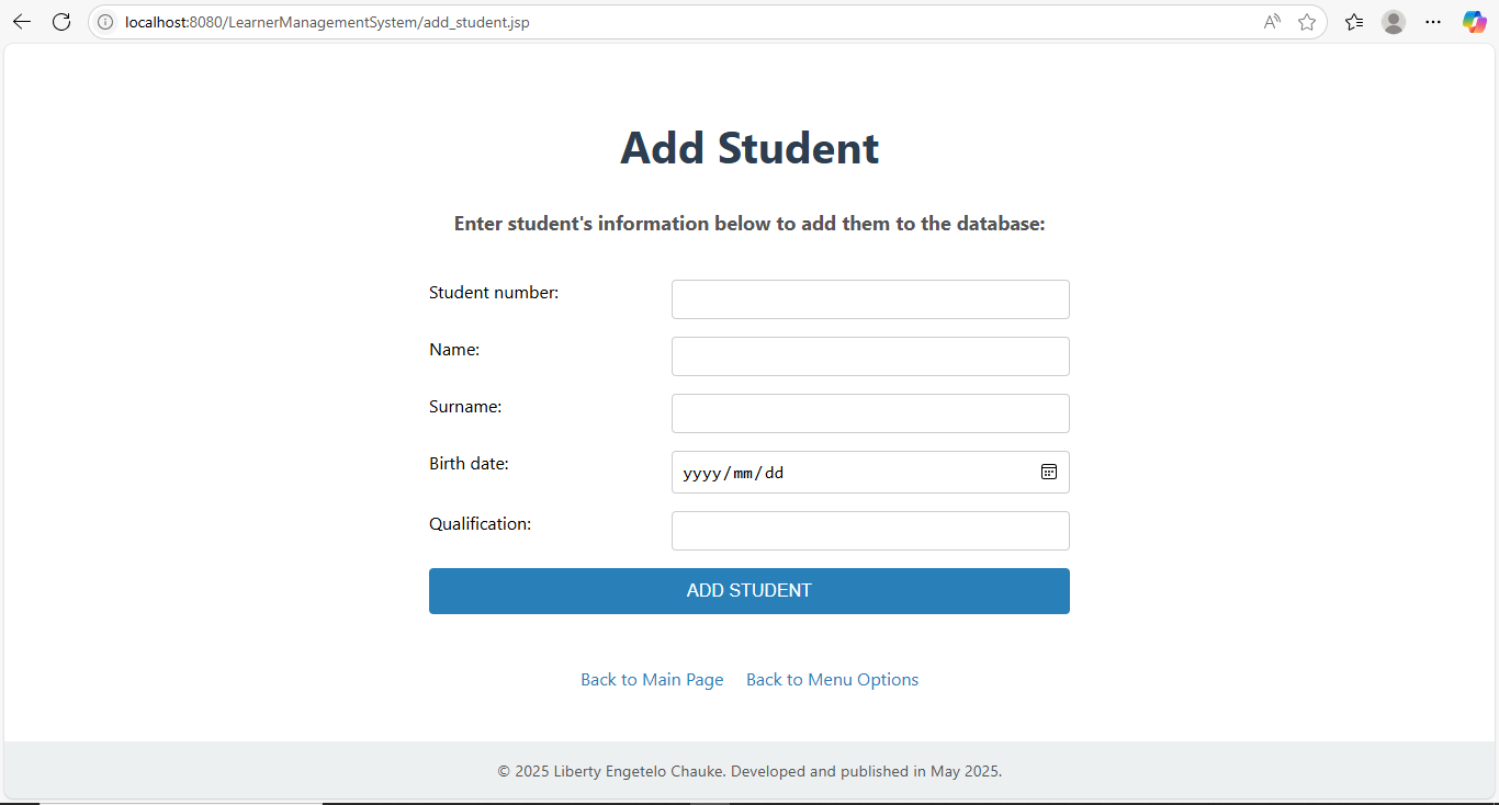 A Java EE Web Application to manage learner records using Servlets, JSPs, and JPA.